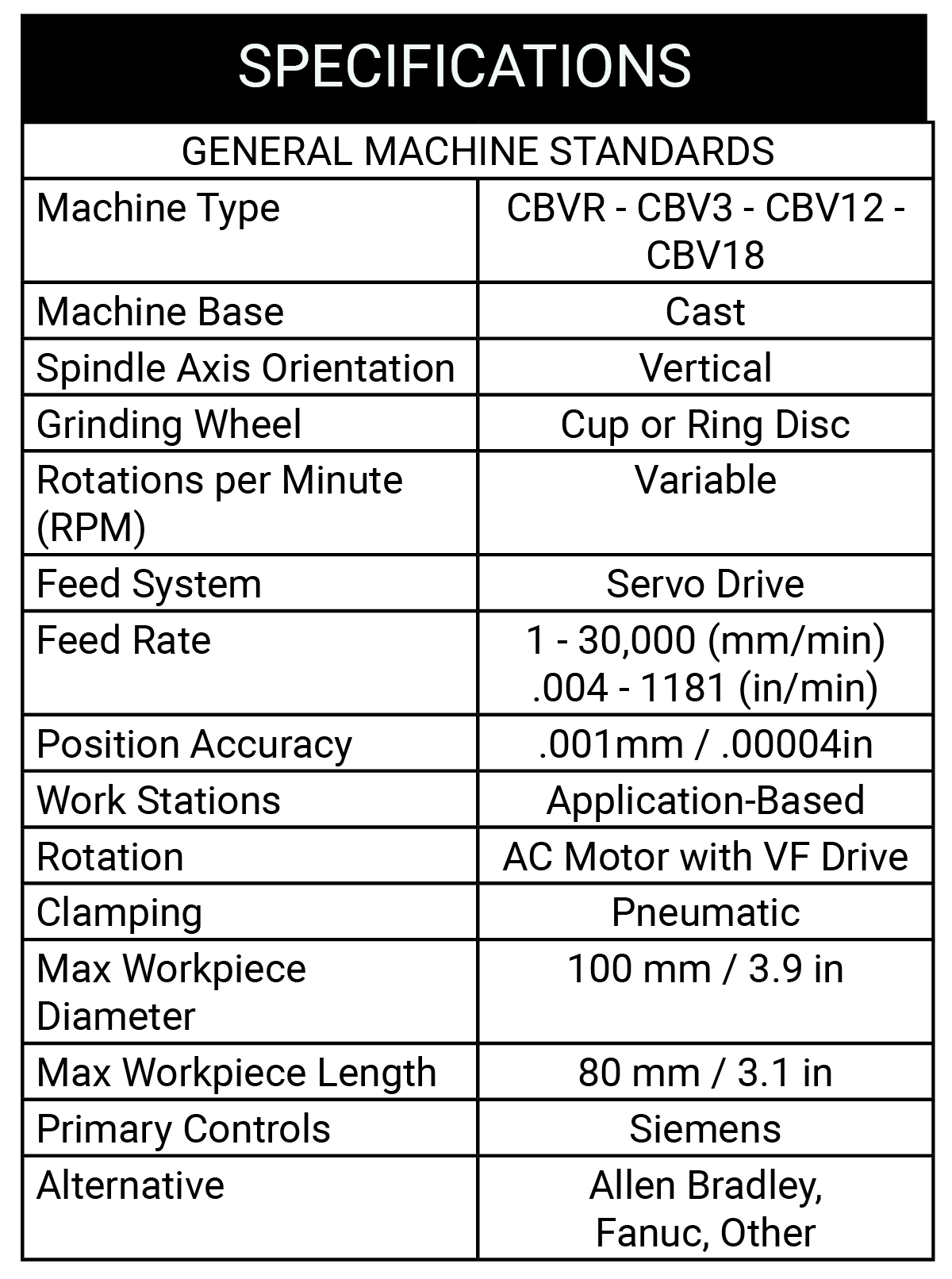 Single spindle machines have a very small machine footprint, due to the vertical orientation of the spindle and the machine mounted electrical panel. This machine setup is perfect for parts that only require one side to be ground. By clamping on the bore or I.D./O.D. of the part we can ensure a tight squareness tolerance.