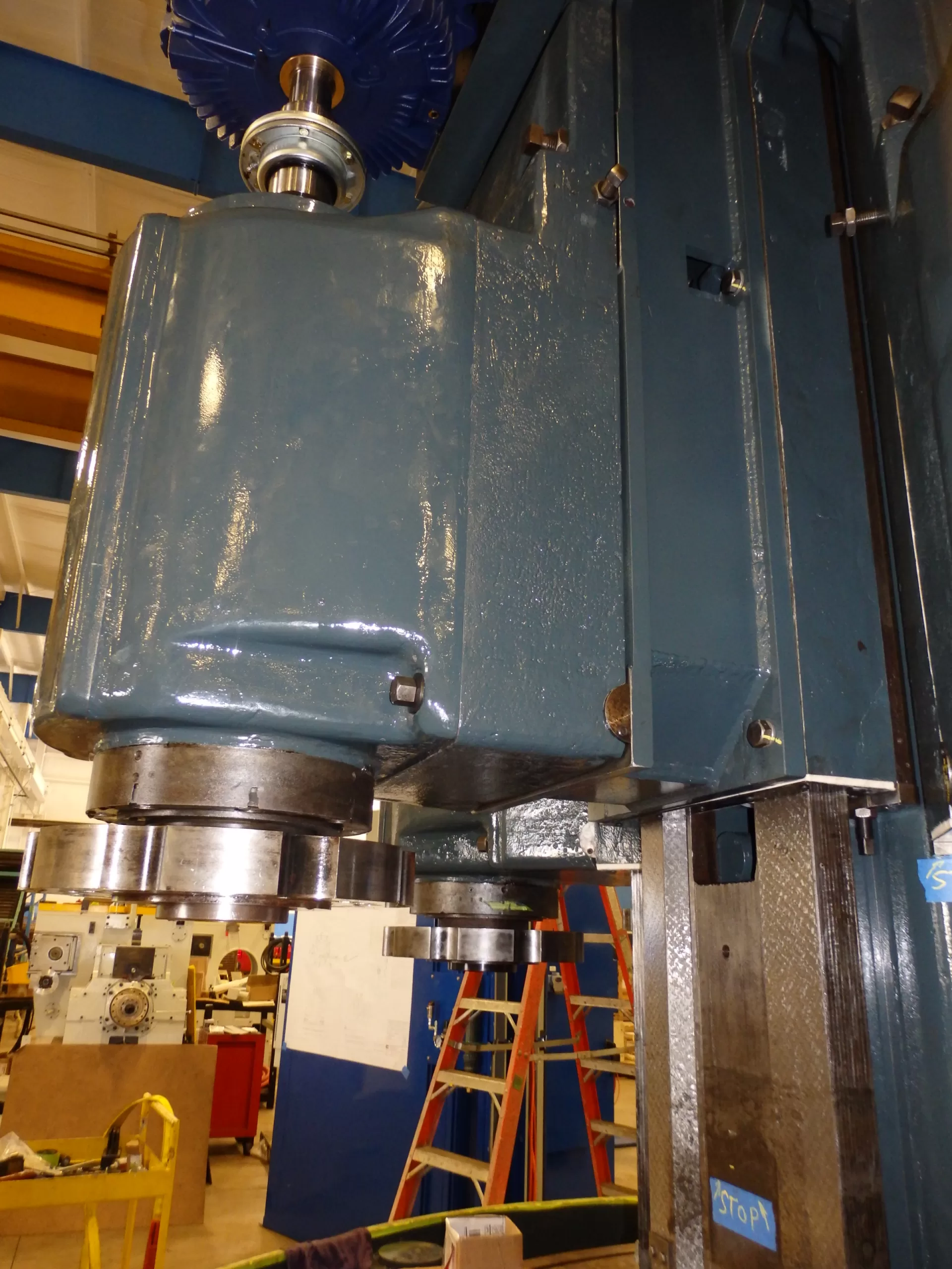 - Overview photos and documentation of grinding spindle head assembly.